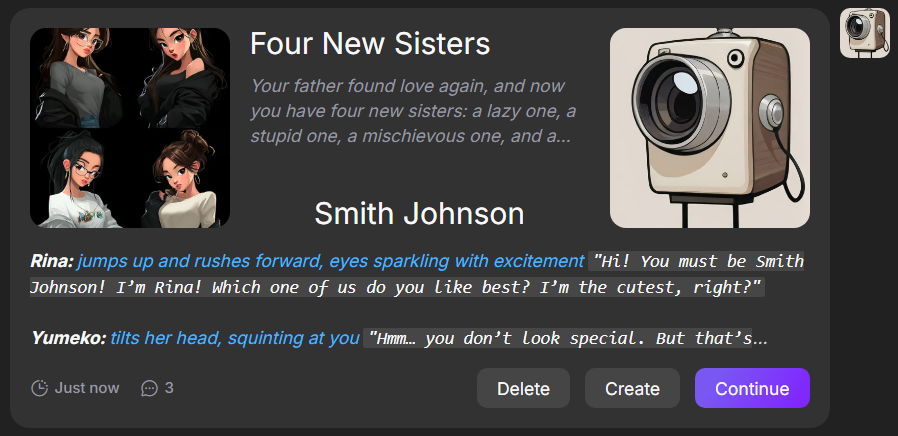 You can create a preset AI model with a pre-configured system prompt. This allows you to quickly apply a specific style of behavior and speech for a character without manually adjusting each parameter.