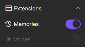 With the memory manager, you can manage a character’s memories: add new ones, delete, or edit existing ones. These can include past facts, details of interactions with you, or any fictional elements.