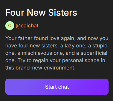 To start a chat, go to the profile of the selected character and click the button under their name. A chat will open where you’ll see a greeting. Reply to it, and the adventure will begin.
