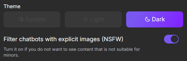 In the Preferences section, you can choose a light or dark theme for the site, as well as enable or disable the NSFW filter.